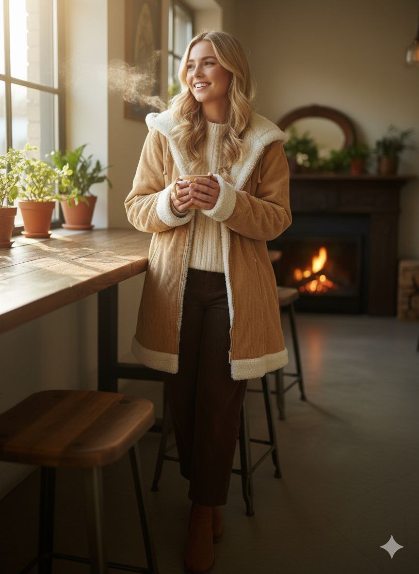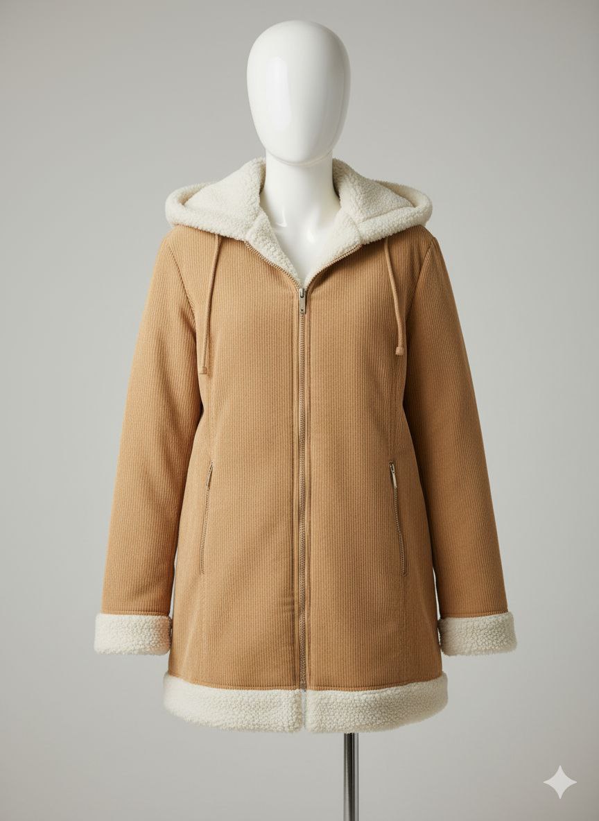 کت مخمل کبریتی کلاه دار با لایه شرپا